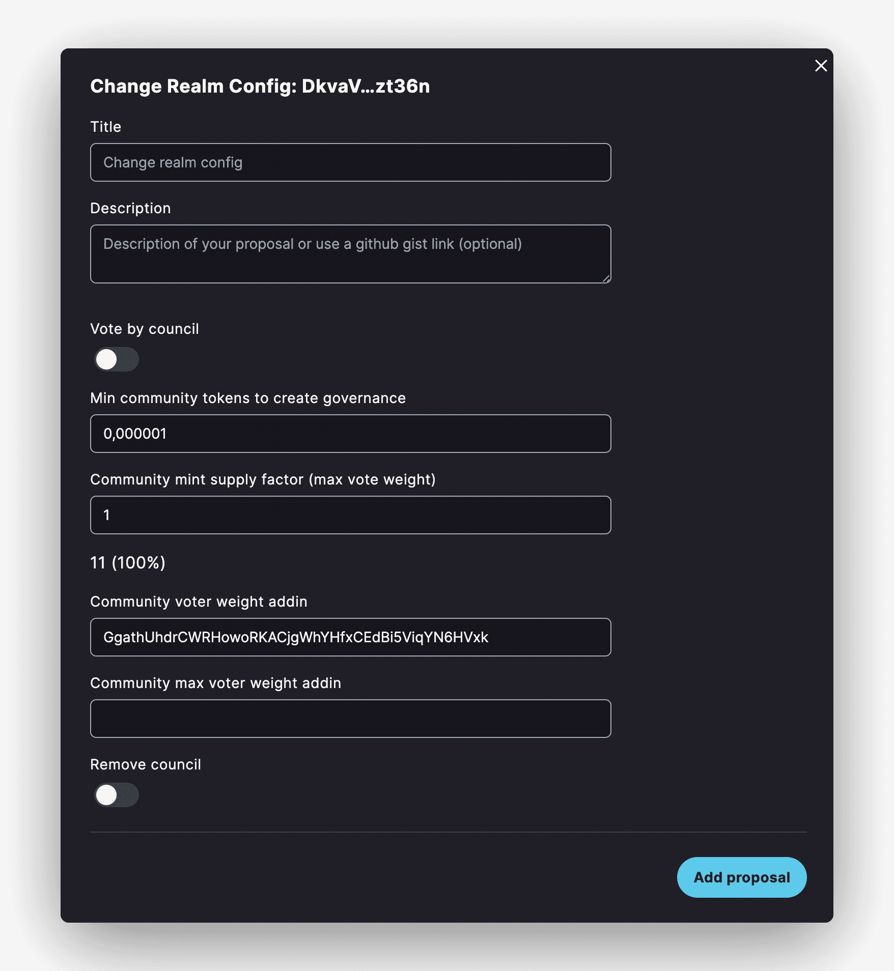 Once the Civic Pass plugin configuration proposal is voted on and executed, the DAO can enable it through a DAO Config Change proposal.