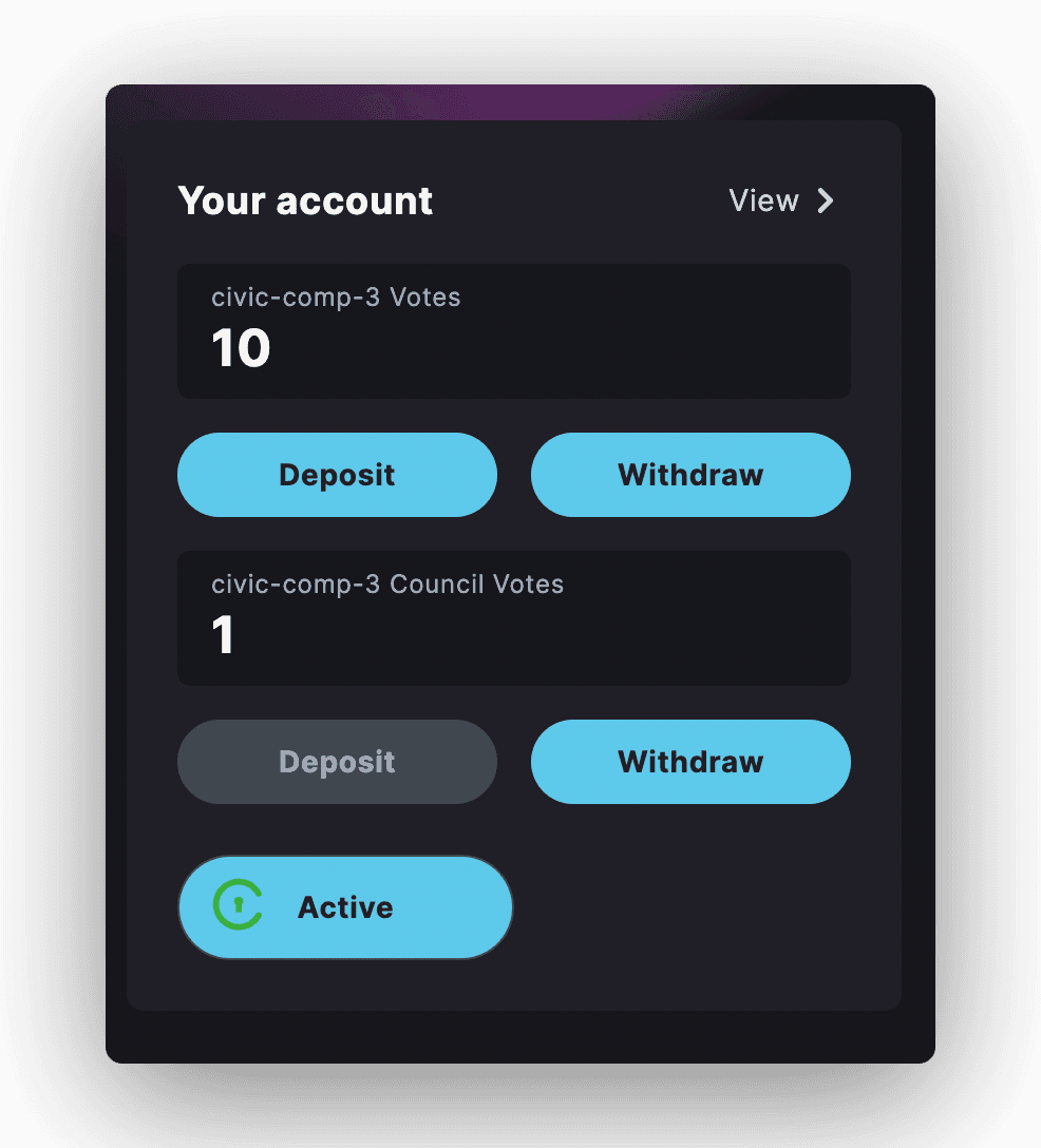The button shows the status of the current pass. A status of "Active" indicates that the member's pass is valid, and they can interact with the DAO.