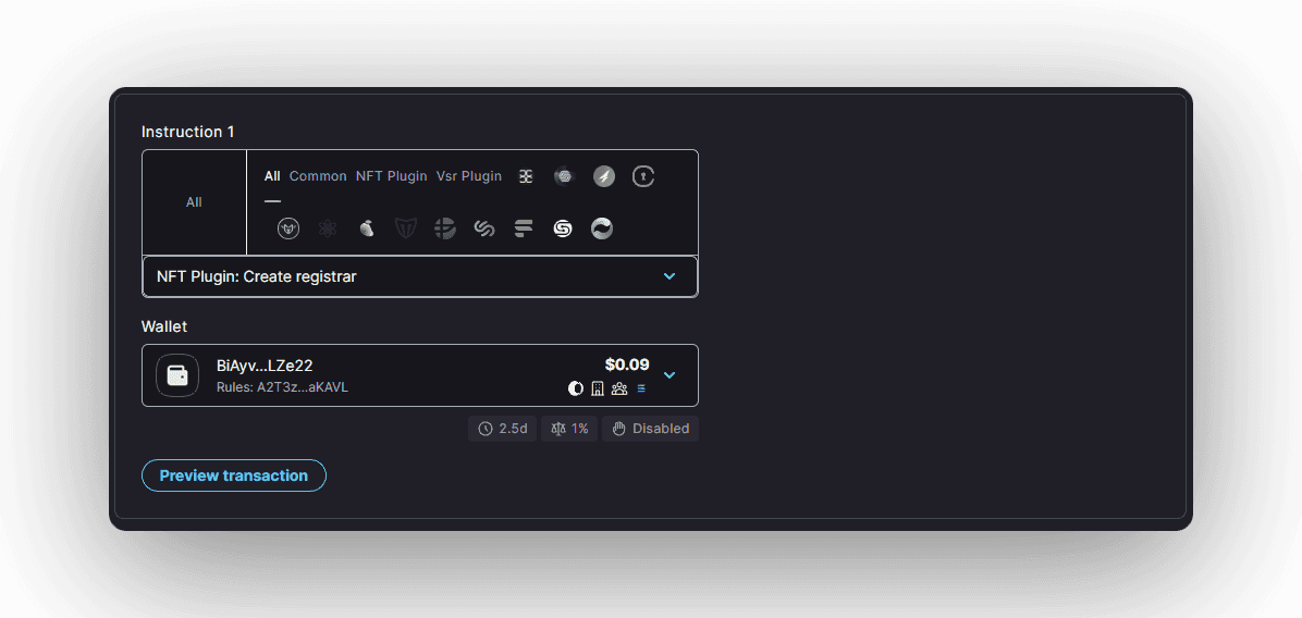 To configure the NFT Plugin, a proposal with the following 3 instructions must be created: