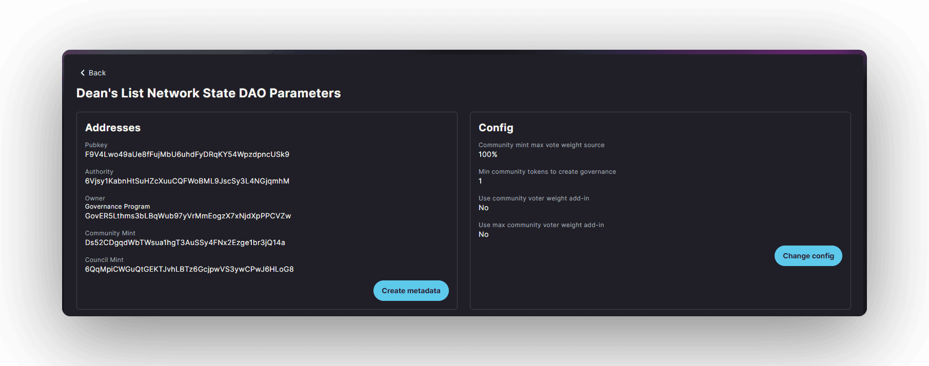 Once the NFT voting plugin configuration proposal is voted on and all instructions executed, the DAO can enable NFT governance through a DAO Config Change proposal.