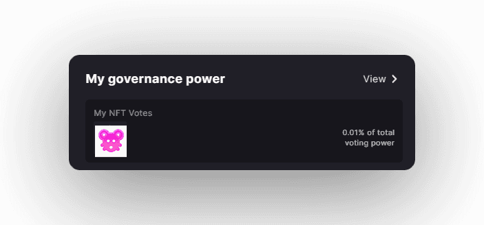 The NFTs eligible for governance are displayed in the account view.
