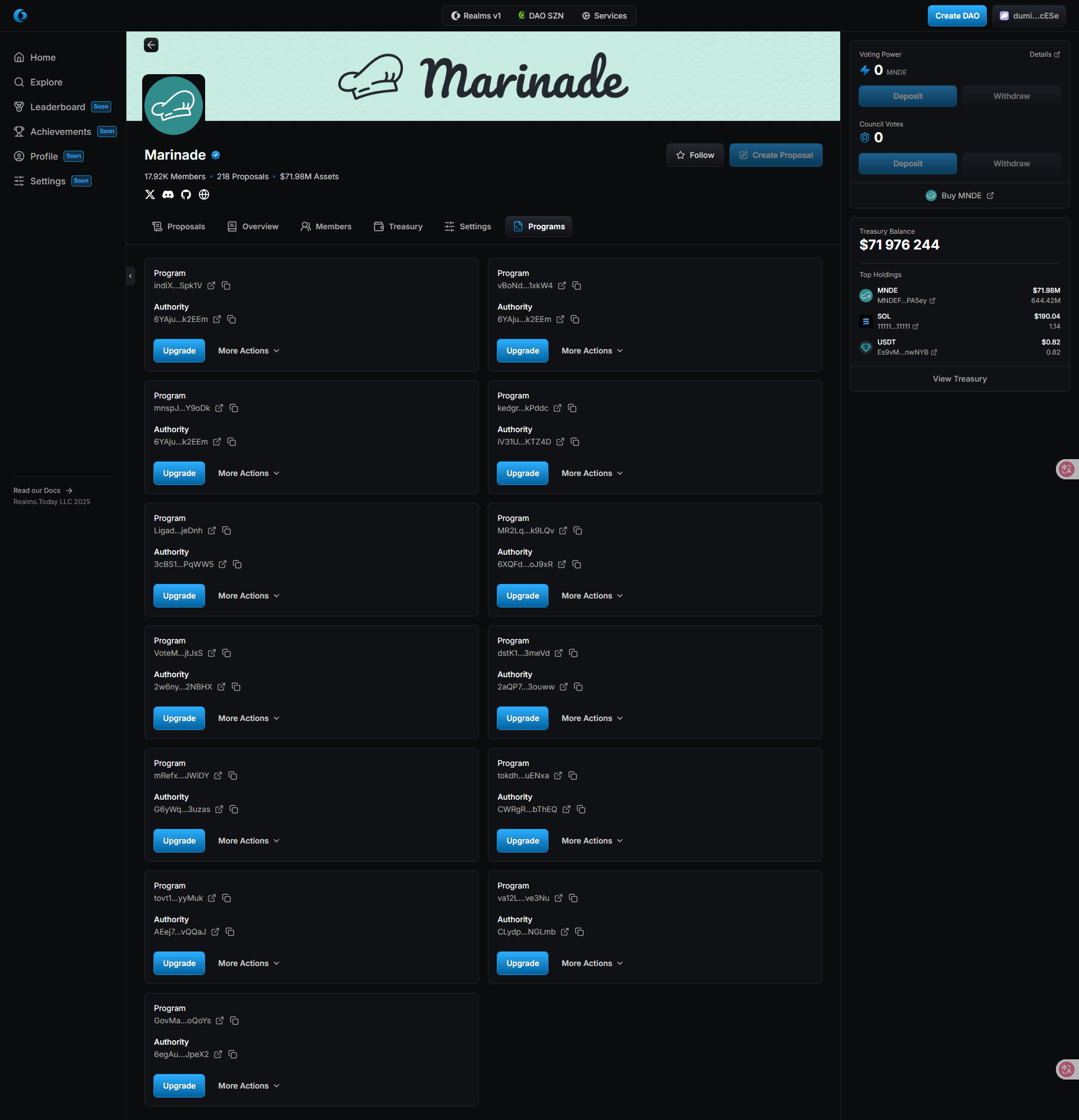 This section allows the user to manage the upgrade authority of programs and do code upgrades.